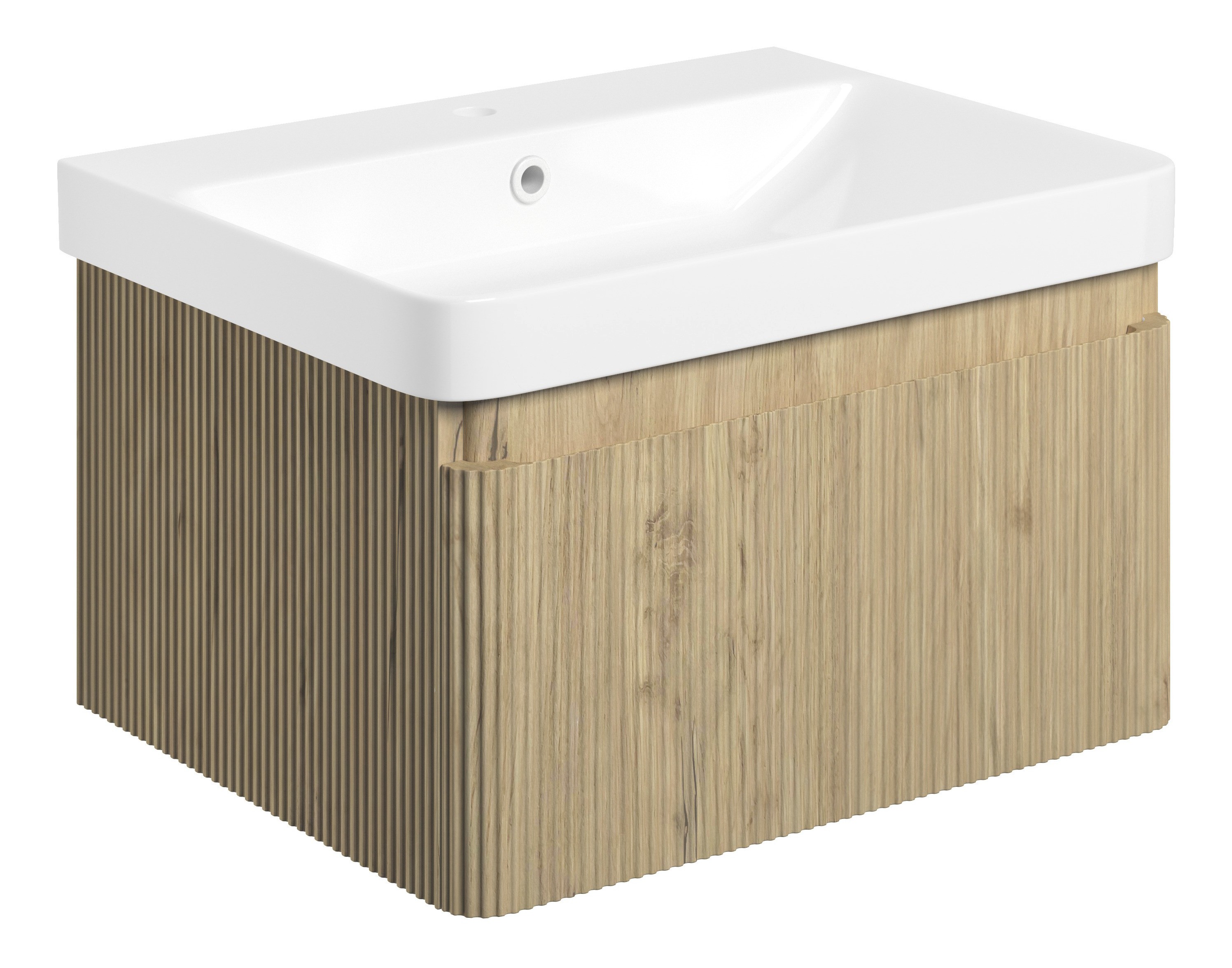 Mauritius 605mm Wall Hung 1 Drawer Basin Unit & Basin - Textured oak