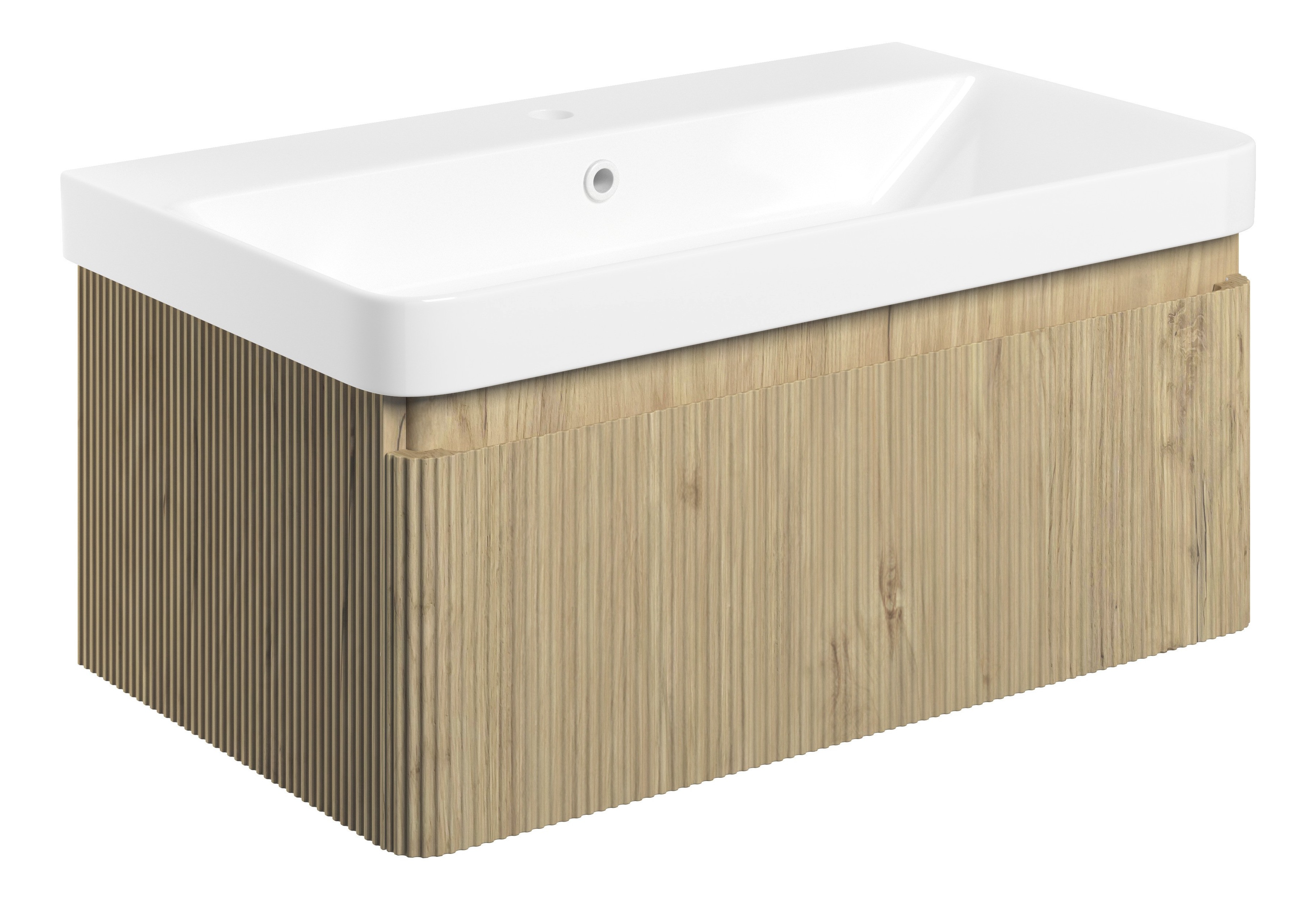 Mauritius 805mm Wall Hung 1 Drawer Basin Unit & Basin - Textured oak