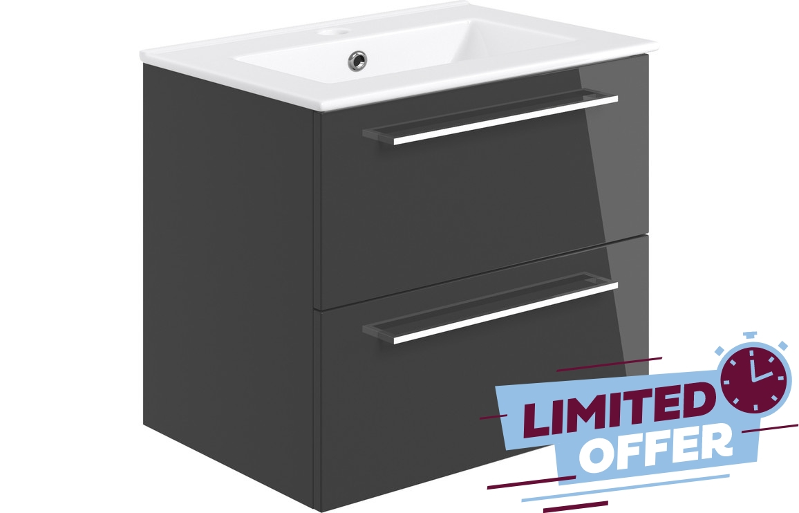 St kitts 610mm Wall Hung 2 Drawer Basin Unit w/Basin - Anthracite Gloss