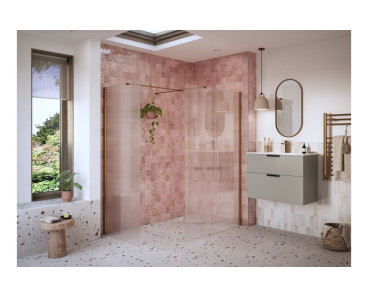 Stream fluted glass wetroom panel brushed bronze