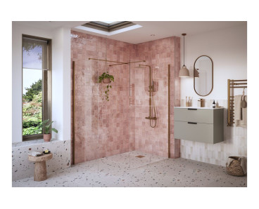 Stream clear glass wetroom panel brushed bronze