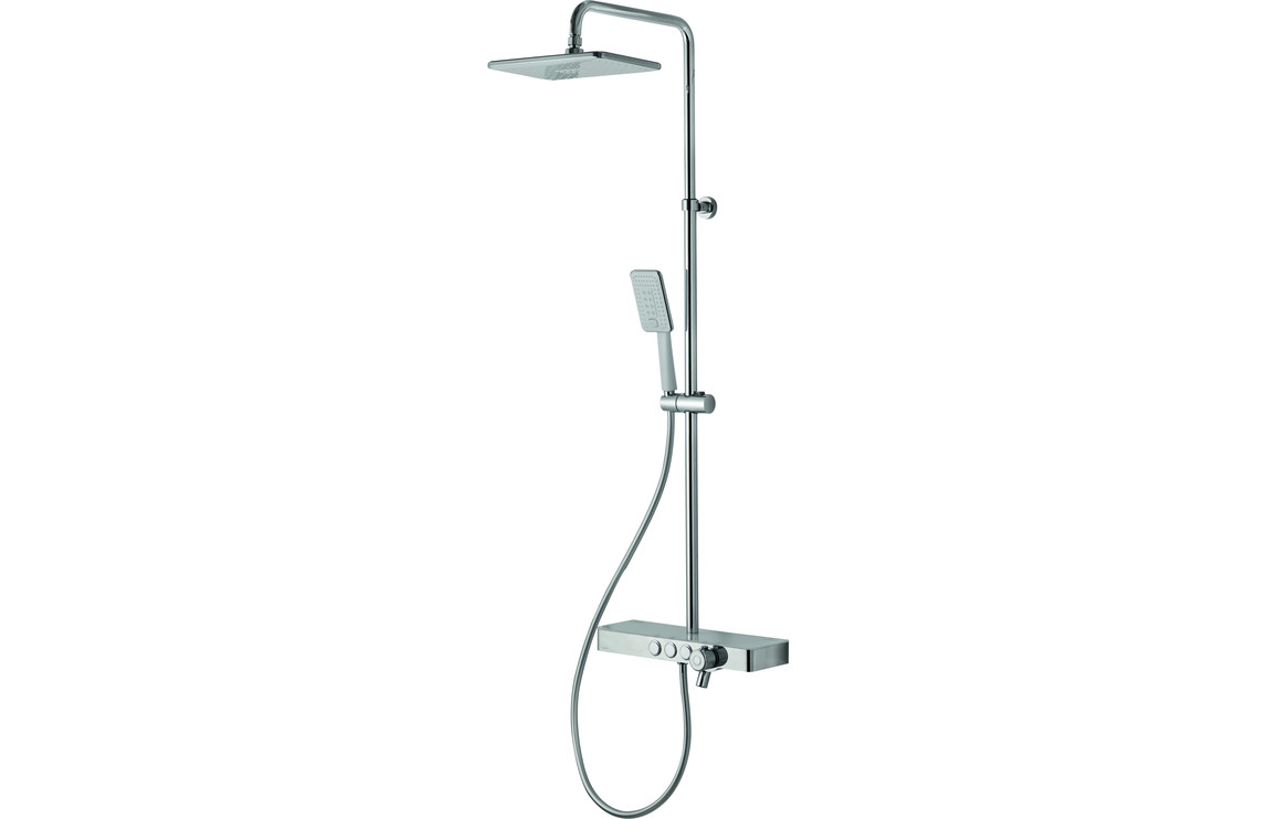 Vema Thermostatic Shower Column w/Fixed Head Riser Shelf & Foot Wash - White/Chrome