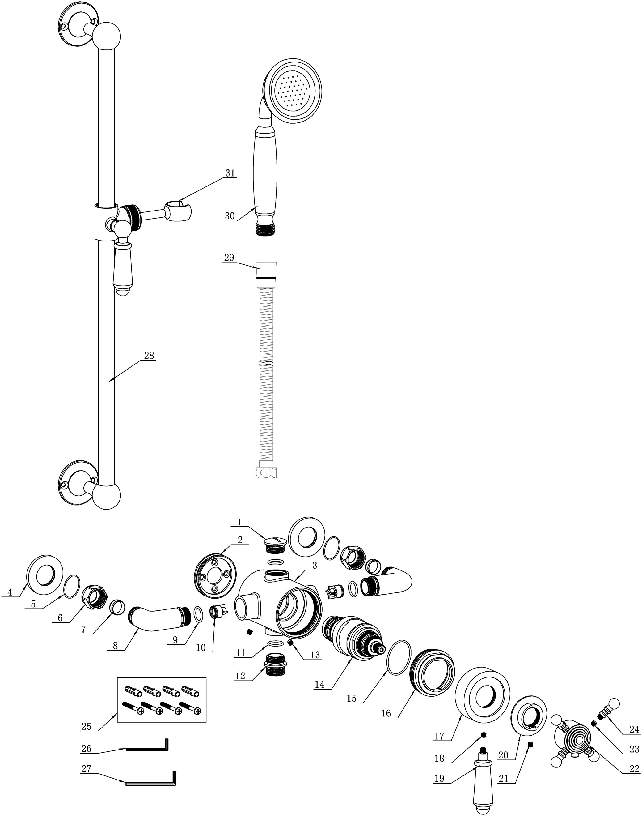Cascades Concentric Single Outlet Shower Valve & Riser Kit Pack 1 - Brushed Brass