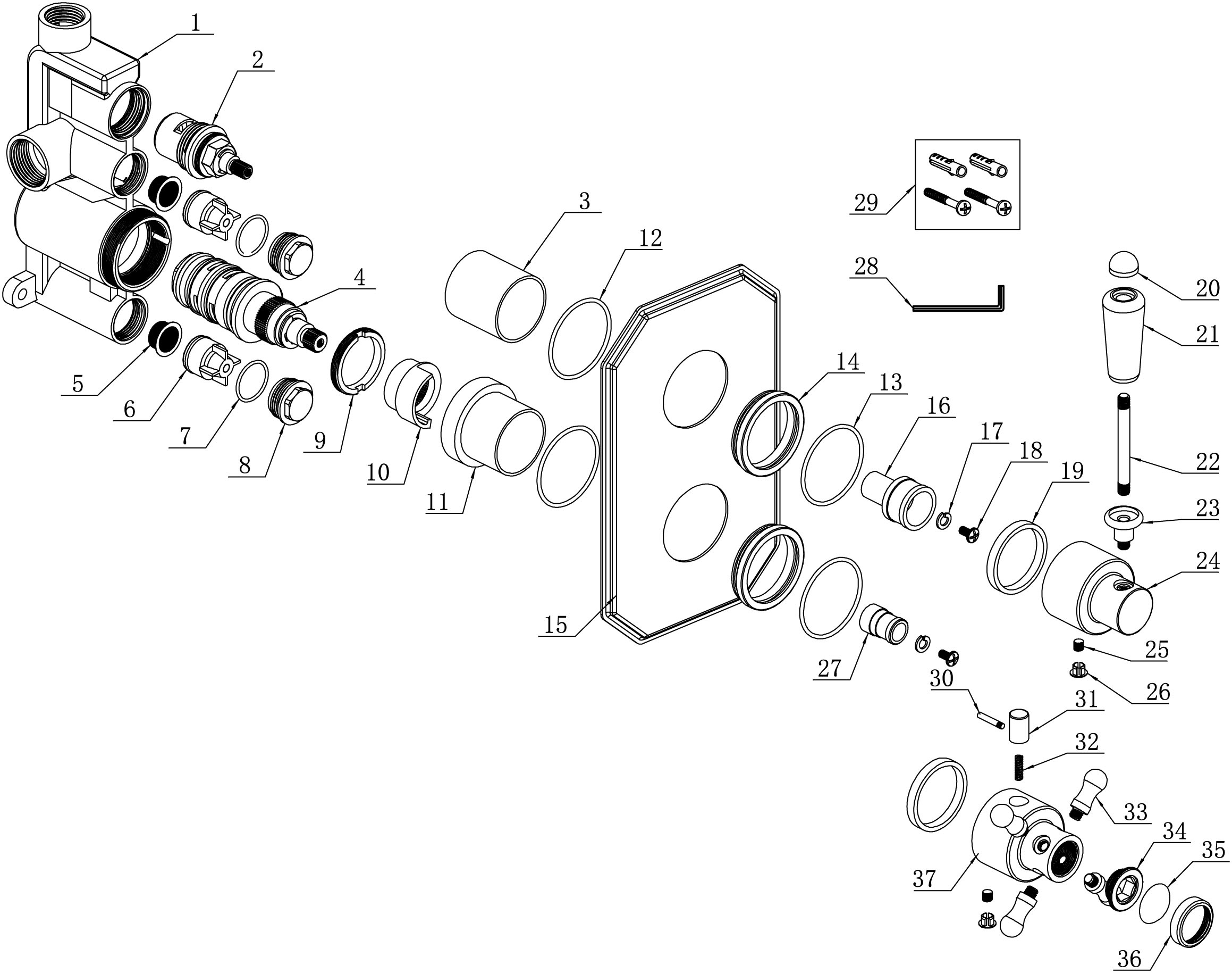 Cascades Traditional Lever Thermostatic Single Outlet Shower Valve - Brushed Brass 5 year guarentee |