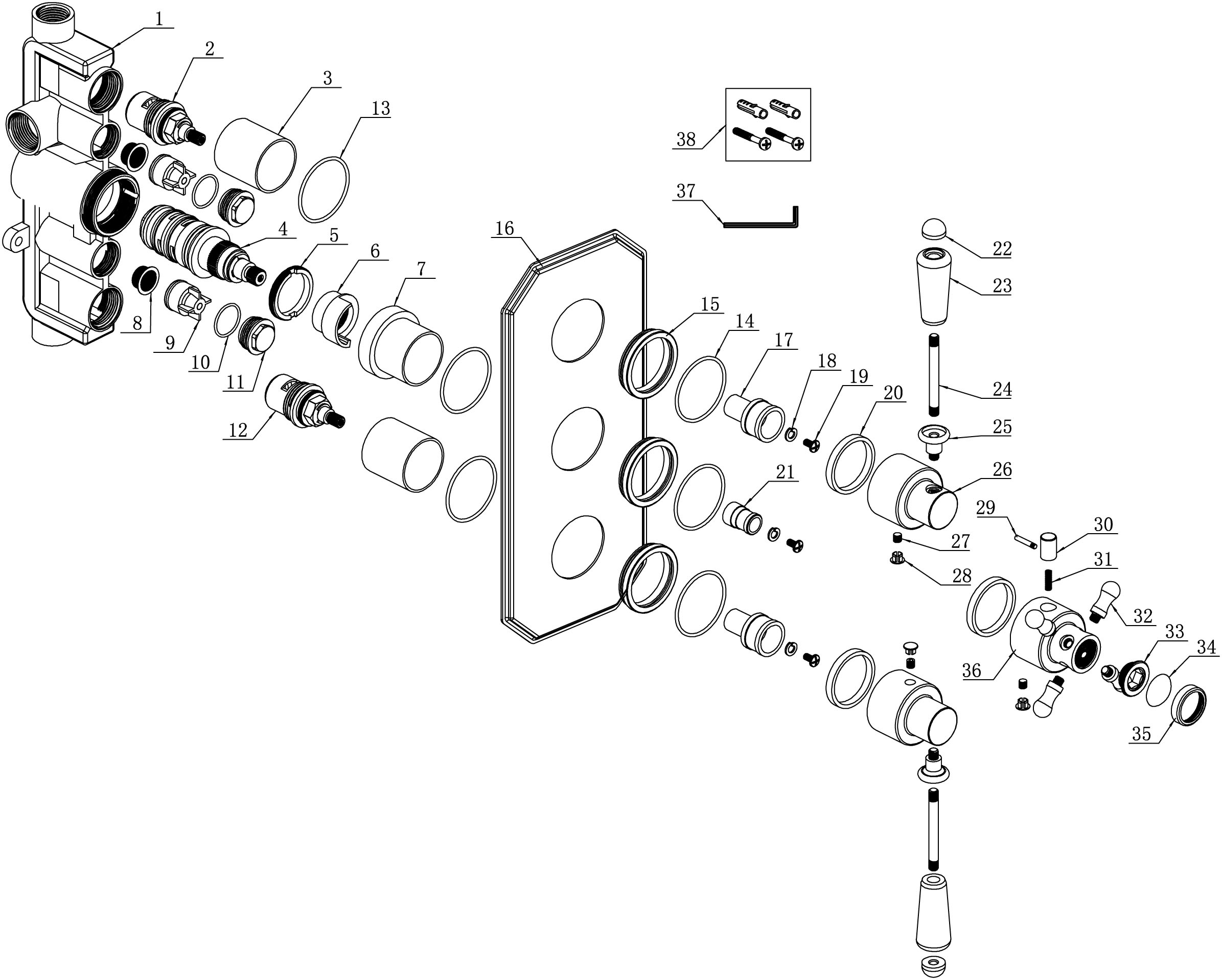 Cascades Traditional Lever Thermostatic Two Outlet Shower Valve - Brushed Brass