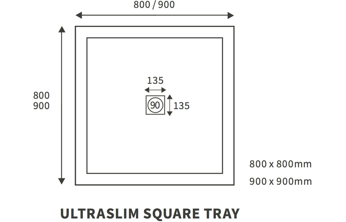 Reflex 25mm Ultra-Slim 800mm x 800mm Square Shower Tray & Waste