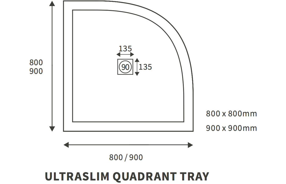 Reflex 25mm Ultra-Slim 900mm x 900mm Quadrant Shower Tray & Waste